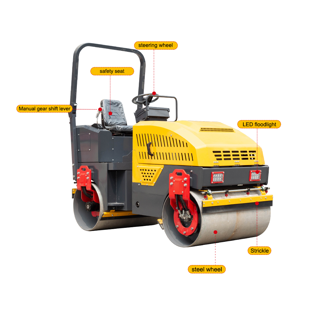 HT-2000 double drum roller can better ensure the smoothness of the road surface in the process of rolling, because the two steel wheels can compact the road surface at the same time, which reduces the uneven compaction that may occur with a single steel wheel.