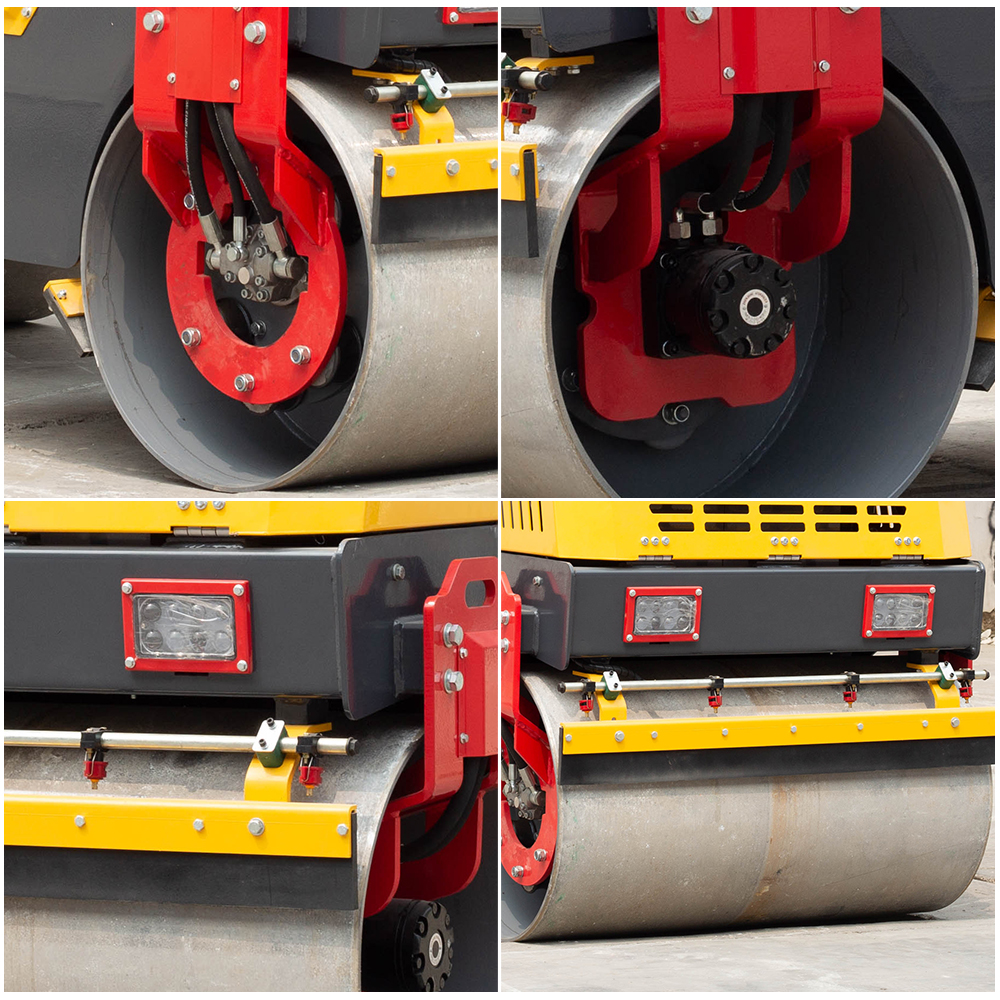 Brand cycloid hydraulic motor, front and rear double-wheel drive walking, strong climbing walking ability. Front wheel hydraulic vibration, stable performance, strong compaction ability. Support customized front and rear wheel double vibration, can be controlled separately.