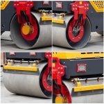 Wheel width: 1200 mm, wheel diameter: 710 mm. The relatively large contact area of the large-sized wheels with the ground allows a wider road or working surface to be covered in a single pass. Reduces the number of roller passes when compacting large areas.
