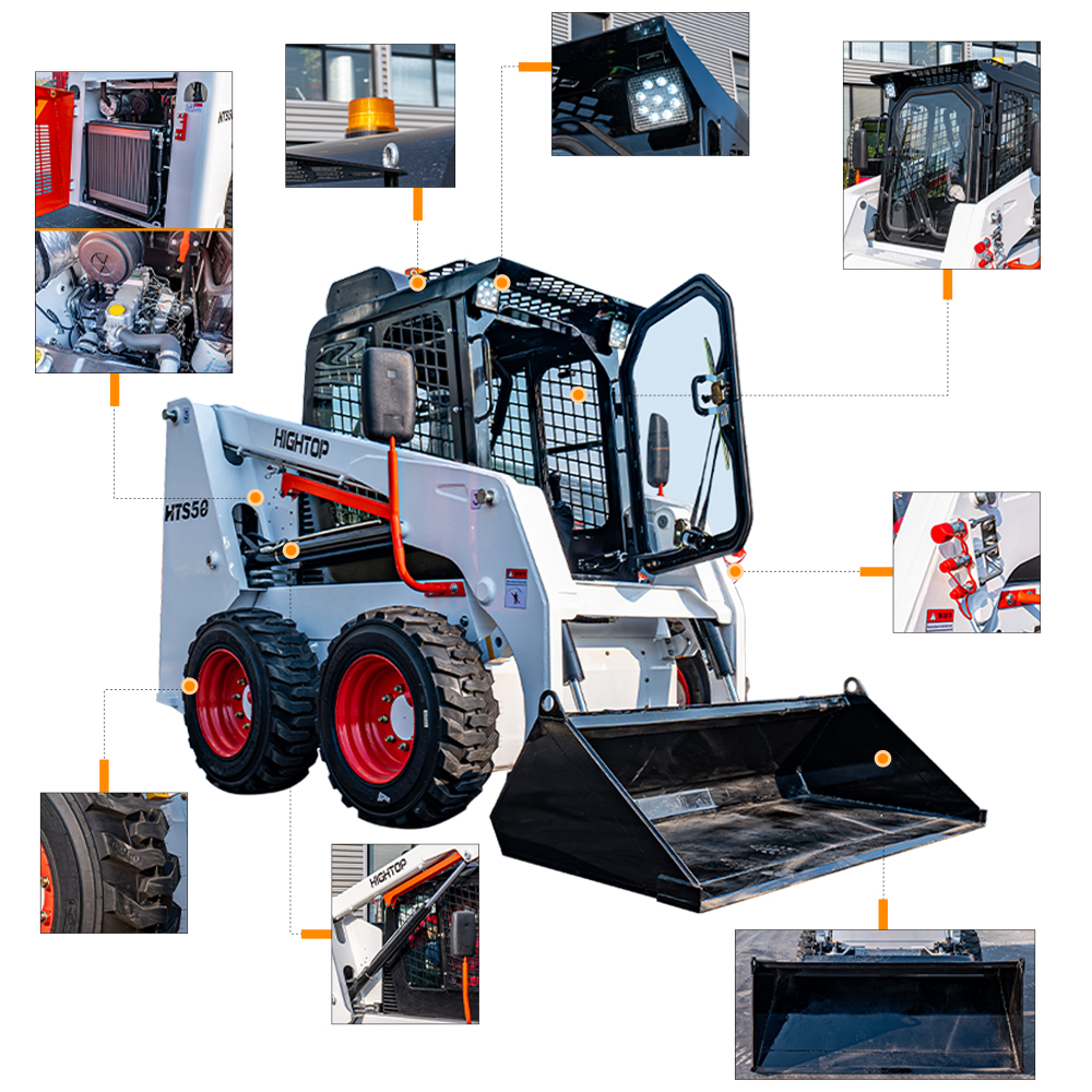La chargeuse compacte HTS50 est équipée d'un moteur haute puissance de marque réputée, d'une puissance de 36,8 kW et d'une vitesse de 2500 tr/min. Qu'il s'agisse de transporter des objets lourds ou de travailler sur des terrains accidentés, les tâches peuvent être accomplies de manière stable et efficace. Pendant les opérations à forte charge, le moteur peut également assurer un fonctionnement continu et stable de l'équipement.